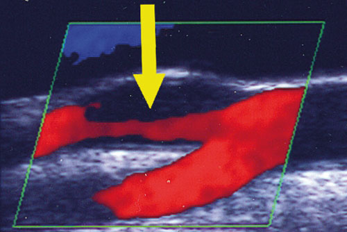 Diese Methode bildet die Blutgefäße und den Blutfluss im Längs- oder Querschnitt ab. So werden Engstellen, Gefäßthrombosen oder Kalkablagerungen sichtbar.