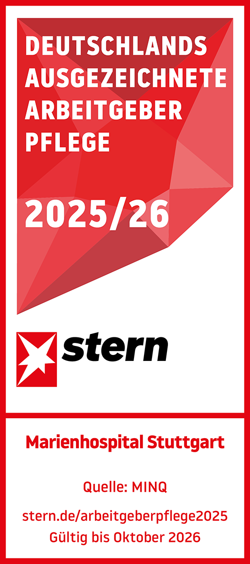 Das Marienhospital Stuttgart hat als erste Klinik in Stuttgart die Zertifizierung „pflegeattraktiv“ erhalten. „Pflegeattraktiv“ ist ein Qualitätssiegel, das in Zusammenarbeit mit dem Bundesverband Pflegemanagement entwickelt wurde und von der PflegeZert GmbH vergeben wird. Das Zertifikat bestätigt, dass wir uns im Marienhospital aktiv dafür einsetzen, die Arbeitsbedingungen für unsere Pflegefachpersonen kontinuierlich weiter zu verbessern und die Arbeit in einer wertschätzenden Arbeitsatmosphäre nachhaltig attraktiver zu gestalten.
