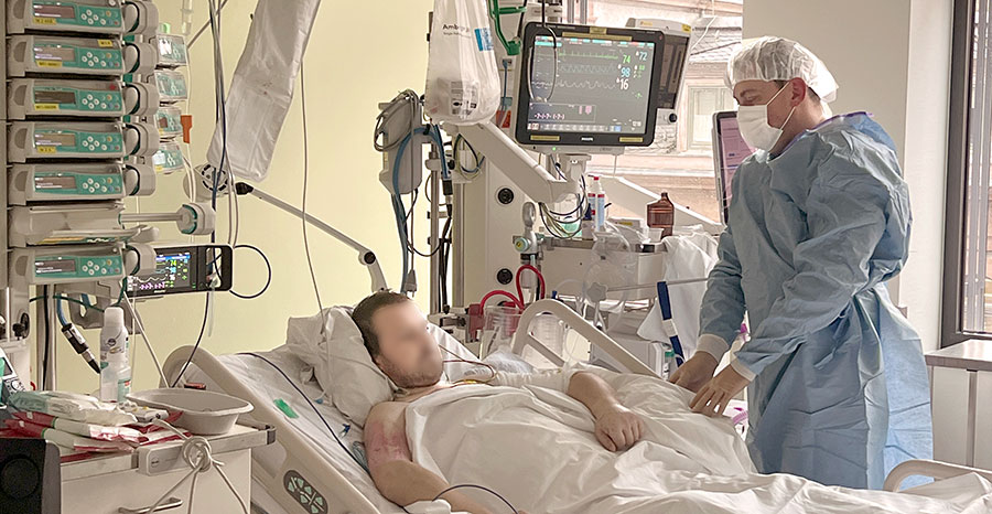 „Der intensive interprofessionelle Austausch ist essenziell für die erfolgreiche Therapie“, sagt Dr. Matthias Rapp, Oberarzt der Klinik für Orthopädie, Unfallchirurgie und Sporttraumatologie. Denn bei schweren Verbrennungen werden nicht nur die Haut als größtes Organ des Menschen, sondern sämtliche Organsysteme in Mitleidenschaft gezogen. Eine systemische Reaktion ist bei großflächigen Verbrennungen die Folge, oft mit langem und komplikationsreichem Verlauf.