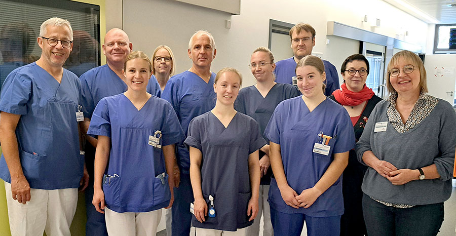 Unter der Leitung von Dr. Matthias Rapp gehören Anästhesisten, Infektiologen, spezialisierte Pflegekräfte, Mitarbeitende der Hygiene und Infektionsprävention, Psychotherapeuten, Physio- und Ergotherapeuten sowie eine Seelsorgerin zum interdisziplinären Burnteam am Marienhospital Stuttgart.