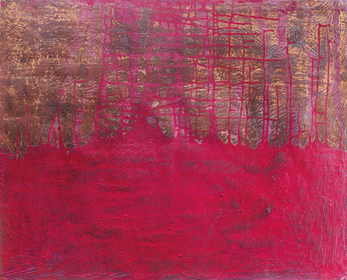 Durch die spezifische Technik und Verwendung bestimmter Materialien – Metallstaube in Verbindung mit Acrylfarben – werden auf dem Malgrund bereits während des Auftrags und darüber hinaus chemische Prozesse ausgelöst. Diese gezielt eingesetzte, aber nur bedingt kontrollierbare und zu steuernde Korrosion ist für Klaus Klemm ein „Symbol der Veränderung“ – ein Zeichen dafür, dass alles einem ständigen Fluss unterworfen ist.