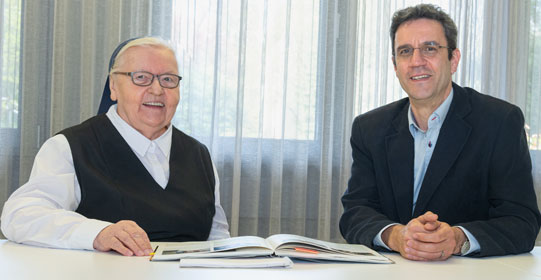 Schwester Consolatrix Bradatschek gehörte von 1979 bis 2000 zum Leitungsteam der Schule. Die vinzentinische Ordensfrau kannte die Schule aber bereits seit 1969, als sie Lehrerin an der Diätschule im selben Gebäude wurde. Stefan Böck war von 2010 bis 2020 stellvertretender Schulleiter und von Ende 2020 bis Anfang 2021 kommissarischer Leiter der Schule. Die beiden überblicken also gemeinsam mehr als die Hälfte der 100-jährigen Geschichte dieser Bildungseinrichtung. In einem Interview der Patientenzeitschrift „marien“ berichten sie über ihre Erlebnisse und Erfahrungen.