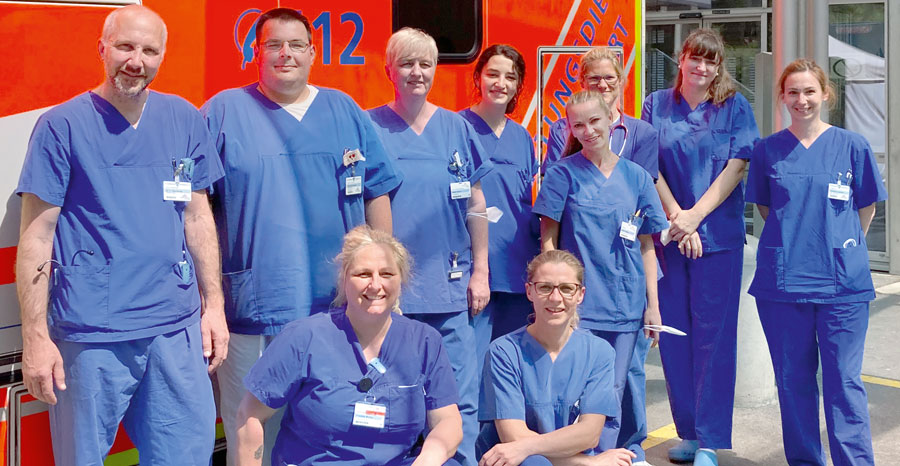 Das enorme Spektrum einer Notaufnahme geht von einer leichten Erkrankung bis hin zu Patienten, um deren Leben wir kämpfen müssen“, sagt die zweite stellvertretende Pflegebereichsleiterin Esther Weber. „Man kann nicht planen. Es kann sein, wir sitzen hier jetzt im Gespräch und müssen in der nächsten Minute im Schockraum sein und umschalten“, ergänzt Alexander Krauß. Was aber alle Gesprächsteilnehmer bestätigen: Das interdisziplinäre Arbeiten und das medizinische Involviert-Sein der Pflegekräfte schweiße das Team zusammen – bei flachen Hierarchien, ständigem Austausch und hohem Niveau in allen Bereichen. Darauf kann man ruhig auch ein bisschen stolz sein. Aber eigentlich macht man in der Notaufnahme nicht viel Aufhebens drum, sondern einfach nur einen guten Job.