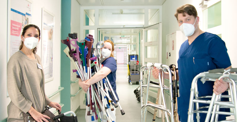25 einzelne Gehstützen, acht Gehböcke, vier Rollatoren, ein Rollstuhl und ein älterer, aber noch funktionsfähiger Gehwagen – das ist die Bilanz einer Aufräumaktion der Physio- und Ergotherapie im Marienhospital.