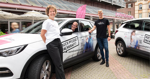 Entstanden sind so über 30 Motive mit unterschiedlichen Aussagen. Sie werden in den kommenden Wochen in verschiedenen Bereichen präsentiert: auf Social Media, an zentralen Punkten in Stuttgart, in Printmedien und auf Fahrzeugen des Marienhospitals. Ziel der Aktion ist, das Profil des Marienhospitals als Arbeitgeber zu schärfen. Eine wichtige Aufgabe in Zeiten von Pflegenotstand und Fachkräftemangel.