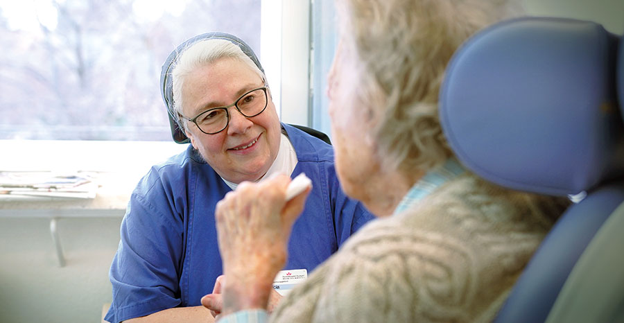 Oberin Sr. Patricia – nun Provinzoberin – lebt Gemeinschaft als Freude. Und sie weiß schon heute, dass sie das Marienhospital und ihre Mitschwestern vermissen wird. „Ich nehme euch alle mit“, sagt sie, „nicht im Gepäck, aber im Herzen.“ Herzlichkeit, Humor, Vertrauen – das ist ihre Sprache. Und es bleibt ihr Lebensmotto: „Herzlichkeit ist die kleine Münze der Liebe.“