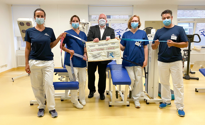 In der Hochphase der Corona-Pandemie war auch unsere physio- und ergotherapeutische Abteilung im Marienhospital von einer „Zwangspause“ betroffen. Doch einige Mitglieder des Teams nutzten die Zeit, um Mund-Nasenschutz-Masken aus Stoff herzustellen. Hierfür richteten sie spontan eine „Nähstube“ ein. Die selbstgenähten Schutzmasken konnten Mitarbeiter des Hauses für fünf Euro pro Stück zugunsten der Palliativstationen erwerben. Auch einige „Stammpatienten“ der Abteilung für Physio- und Ergotherapie kauften die „bunten Bedeckungen“ und spendeten gern.