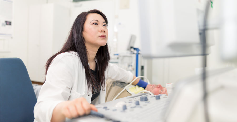 Thrombosen beziehungsweise Lungenarterienembolien sowie arterielle Durchblutungsstörungen in den Beinen machen einen Großteil der Patienten aus. Weitere Schwerpunkte sind die Behandlung oberflächlich erweiterter Venen, den sogenannten Krampfadern, oder von Lymphödemen, die der Volksmund als Wasser in den Beinen kennt. Auch Verengungen der Halsgefäße durch Ablagerungen diagnostiziert Hui Jing Qiu häufig.