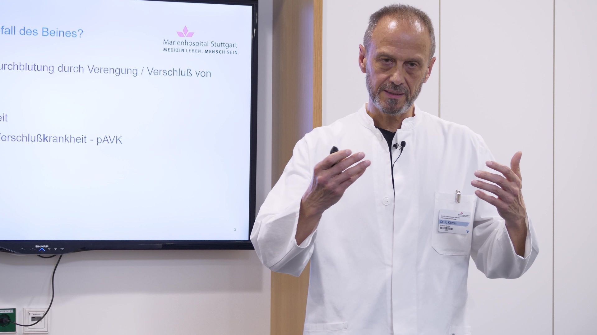 Bei Durchblutungsstörungen der Beine sind die Blutgefäße verengt. Betroffene haben Schmerzen beim Gehen und müssen oft Pausen einlegen. Ist die Arterie ganz verschlossen, spricht man von einem Beininfarkt. Dr. Klaus Klemm informiert über Vorbeugung sowie frühe Diagnose- und Therapiemöglichkeiten.