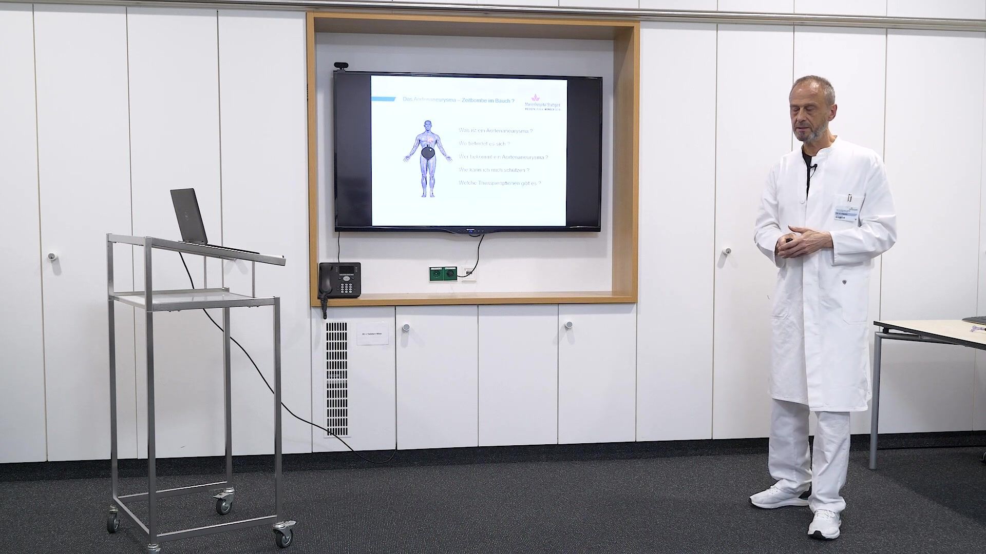 Der Ärztliche Direktor der Gefäßchirurgie Dr. Klaus Klemm informiert über die Erweiterung der Bauchschlagader (Aortenaneurysma), die er als „tickende Zeitbombe“ bezeichnet.